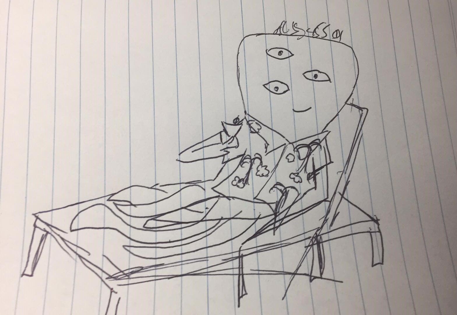 Bored at work doodles that I nonetheless like, also of Flauraan events