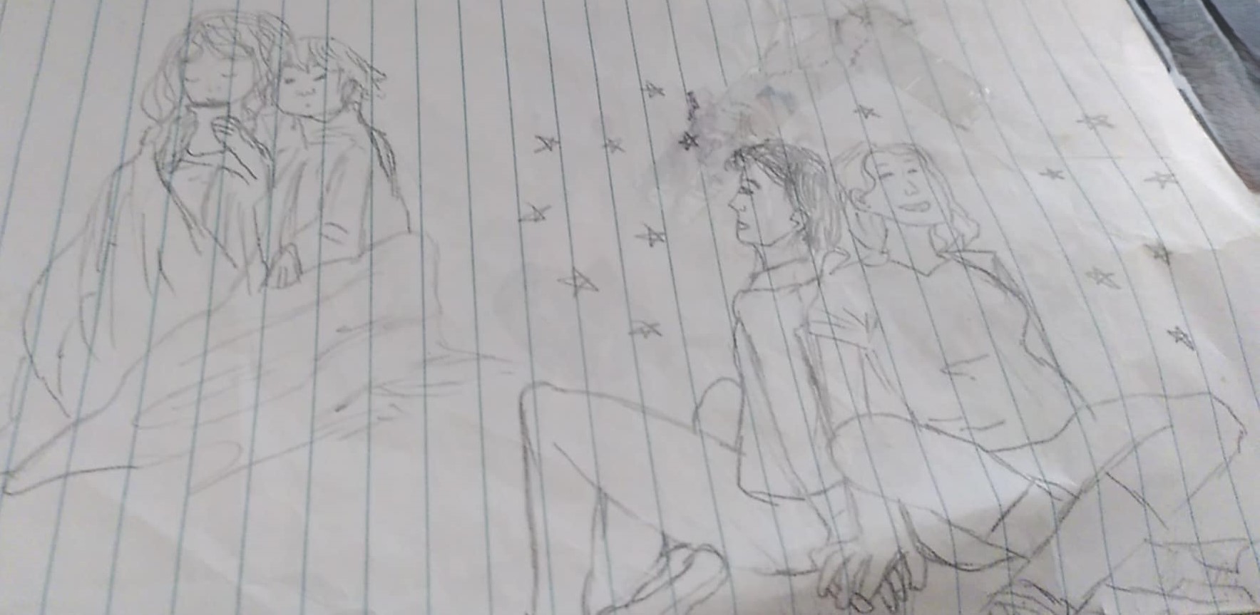 Enjoy the random art and scribblings of our characters from my cowriter Faye and I! You can tell whose art is whose by whether it's good (Faye) or bad (me). We love to draw our little guys though!!
